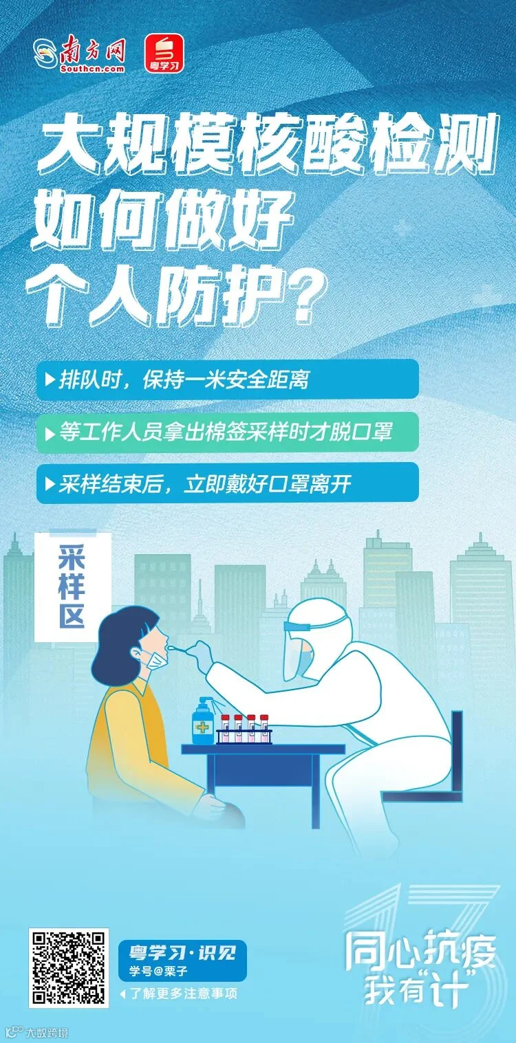南方网、粤学习客户端同心抗疫我有“计”——防疫知识分享平台自11月11日上线以来,获得了广大网友的关注,不少热情网友在平台上与我们共享了实用的防疫知识。本期网友为大家分享在参加大规模核酸检测时的注意事项。