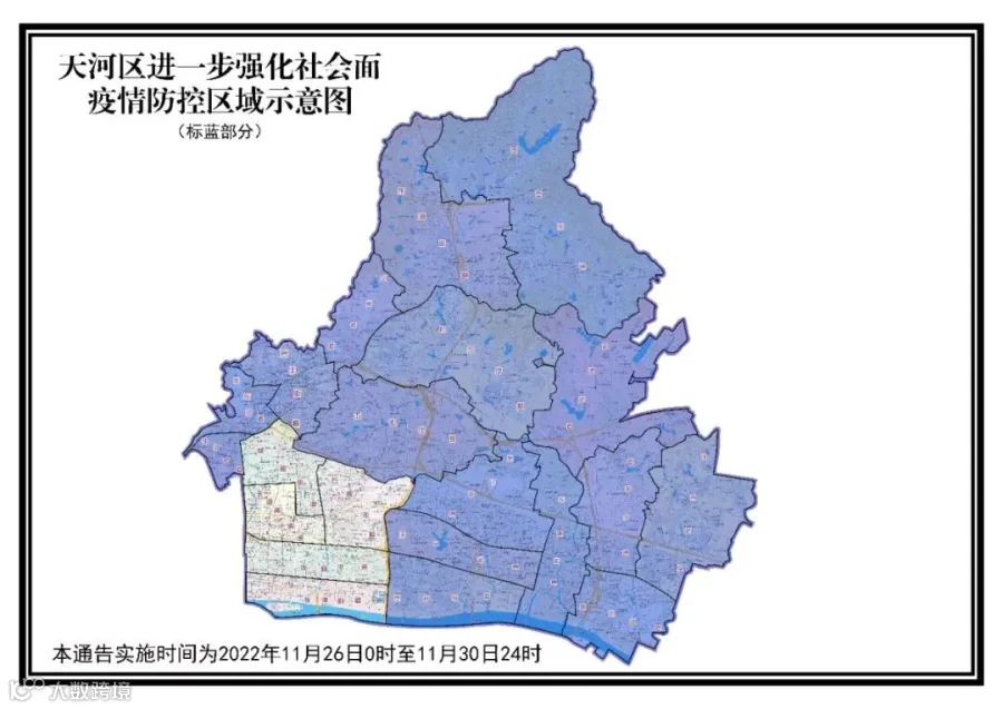 近日,天河区疫情社会面传播风险持续加大,防控形势严峻复杂。为有效阻断疫情传播扩散风险,切实保障广大人民群众生命安全和身体健康,经综合审慎研判,决定在天河区除石牌街、天河南街、林和街、冼村街、猎德街以外的区域,实行如下强化社会面疫情防控措施: