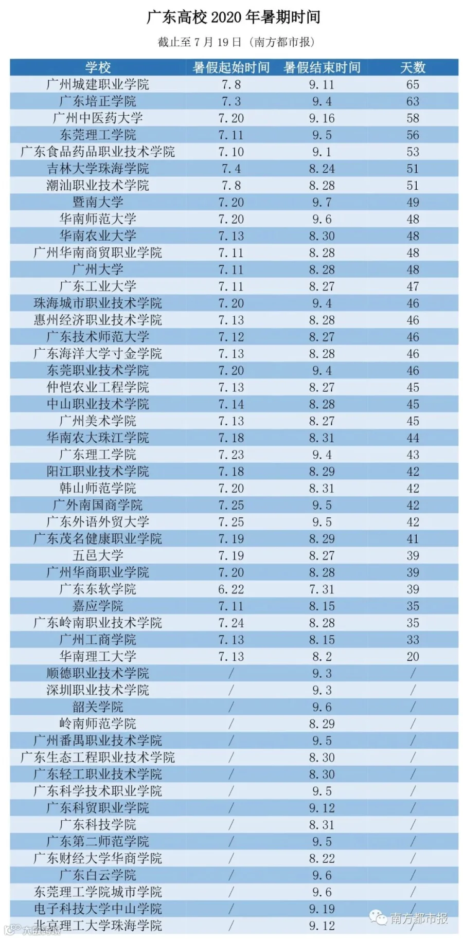 最新!广东各高校暑假时间定了!最短的是……