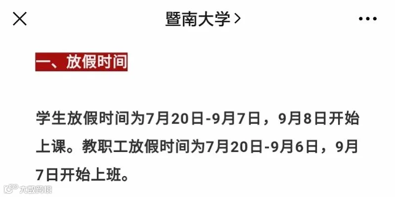7月13日,暨南大学官方公众号发布2020年暑假通知,明确