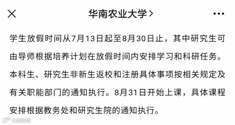 华南农业大学官方公众号则于7月13日晚发布通知称,