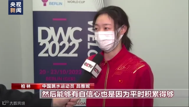 中国跳水运动员 昌雅妮:自信来自平时训练有非常多的积累,然后能够有自信心也是因为平时积累得够,所以应该给予自己一些肯定,然后也比较有勇气果断地去做这些动作。