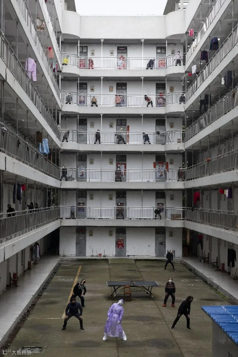 2020年3月25日上午,来自湖北省中医院的刘芙蓉医生带领11栋隔离区的康复隔离人员做八段锦,这是她在武软康复驿站的最后一次值班。南都记者 张志韬 摄