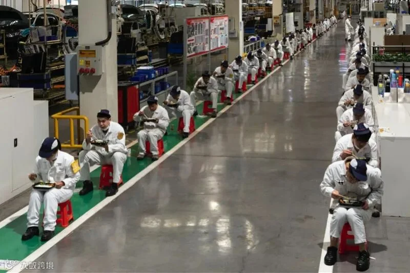 3月24日,为减少进餐时员工间的接触,部分员厂在生产线旁进午餐,人员之间保持1.5米以上距离。南都记者 张志韬 摄