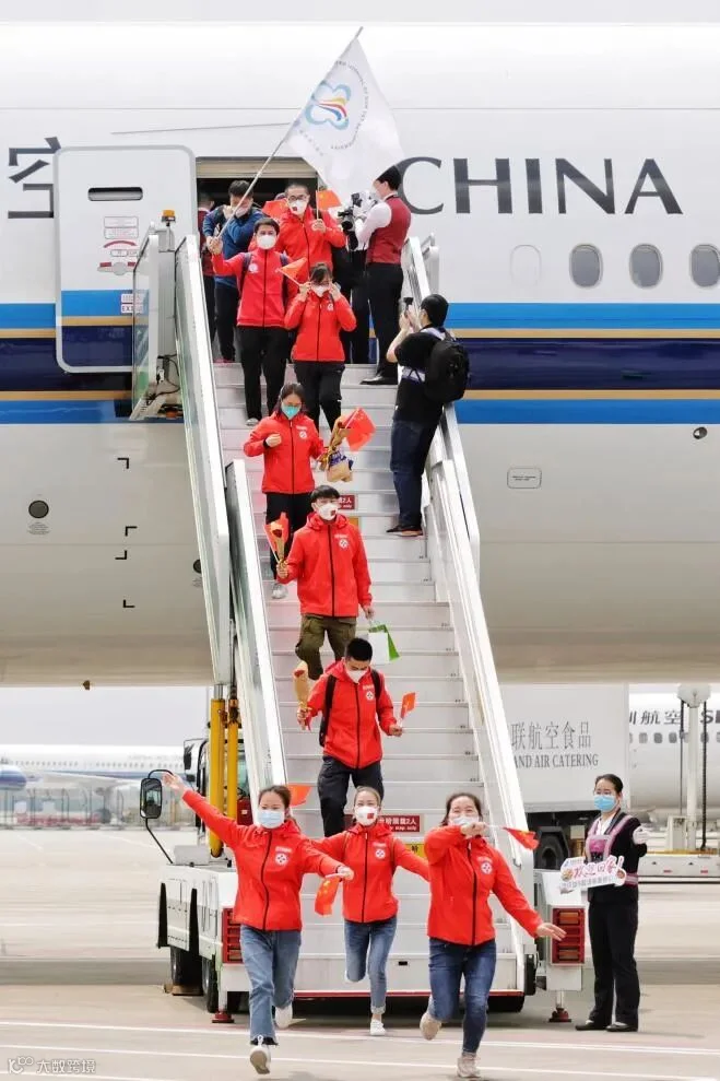 2020年3月22日,在广州白云机场,平安归来的医务人员奔向前来接机的同事。南都记者 黎湛均 摄