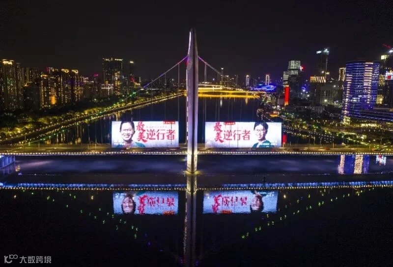 2月19日,广州猎德大桥等地标建筑亮灯致敬最美逆行者。南都记者 徐杰 摄