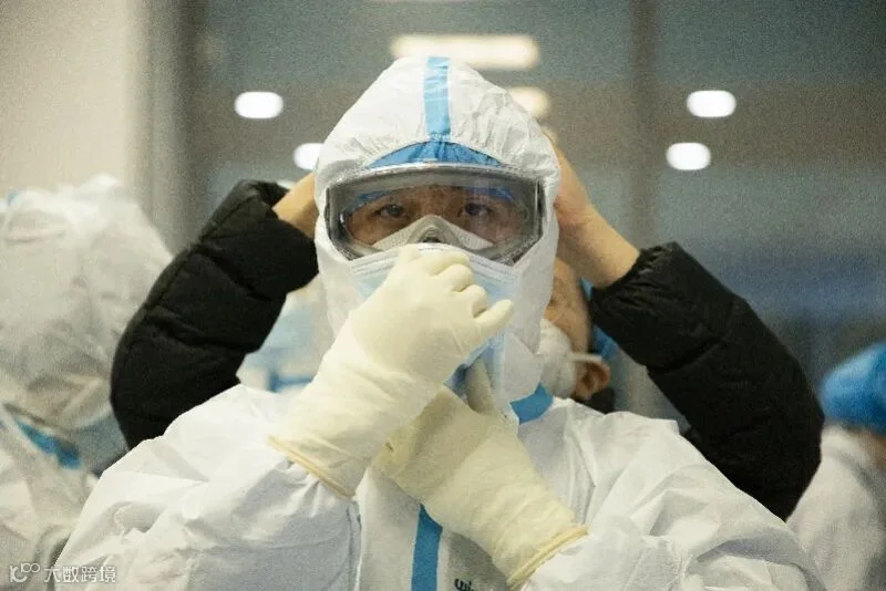 2020年2月20日,同济医院光谷院区,即将进ICU的医护在穿戴防护装备。所有人都要经过院感护士的检查,才能进入隔离区域。南都记者 钟锐钧 摄