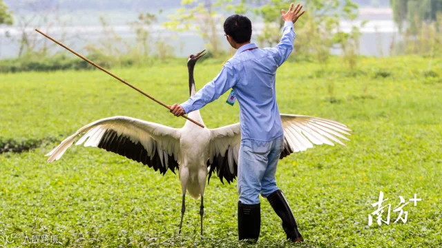 “繁育丹顶鹤很考验人的耐力。对刚出生的幼鹤,我们需要用镊子一个个地去喂食,直至三个月左右,才会认为幼鹤存活,再让其与成年鹤一起适应群体生活。”参与该项目实施的肇庆星湖园林建设管理所鹤园管理部副部长冼永杰介绍,在迁地保护方面,繁殖是最大的难点,“南方气候高热湿润,一旦下雨幼鹤容易生病,风险比较大。”据悉,最初几年,他们曾采用亲鸟繁殖方式,但成活率很低。