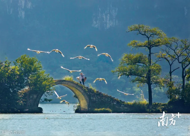 今年国庆假期,肇庆星湖国家湿地公园再度成为游客的焦点——数万只野生鹭鸟栖息其中,每天落日时分觅食归来,呈现“万鸟投林”的壮观景象。其中早晚各一场的丹顶鹤放飞训练表演,更令无数游客喜爱。
