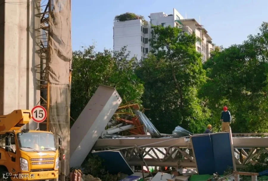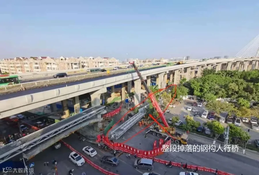 洛溪大桥拓宽工程项目人行坡道桥桁架发生滑落事件