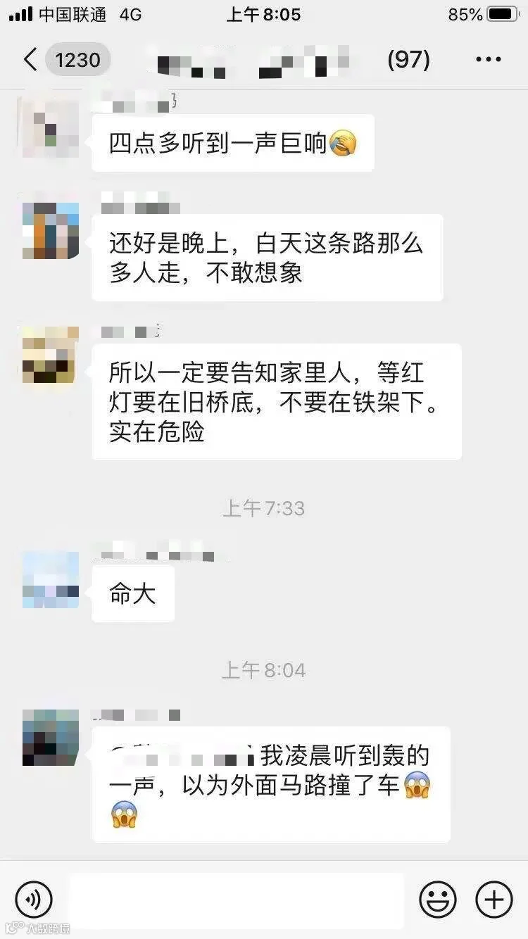 “四点多听到一声巨响,以为外面马路撞了车。”