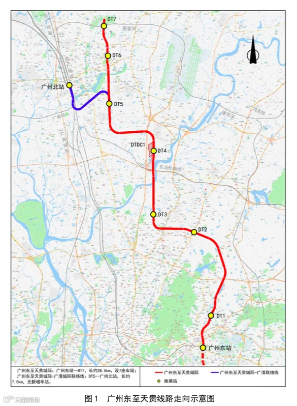 (注:广州东至花都天贵即广州地铁18号线北延段,芳村至白云机场即广州地铁22号线北延段。)
