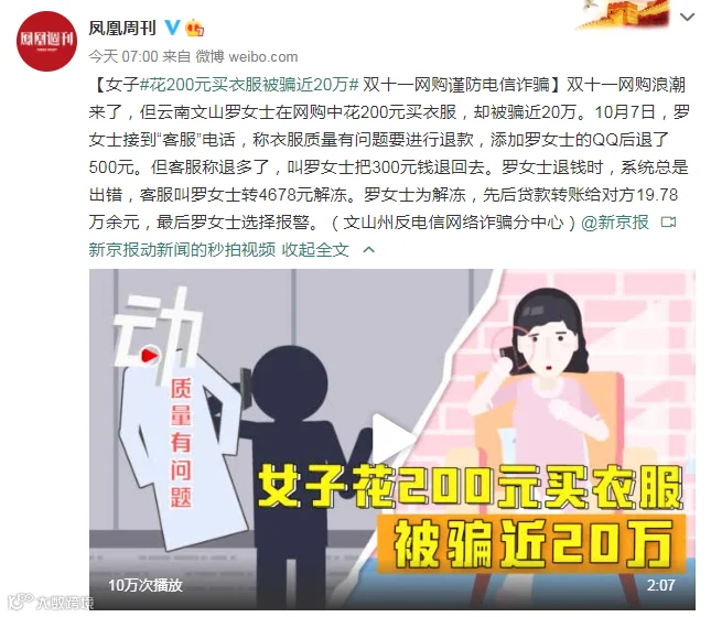 针对“双11”骗局,多地警方发布提醒,一般情况下,消费者在网购后都会如期收到商品,客服不会主动提出退款要求。