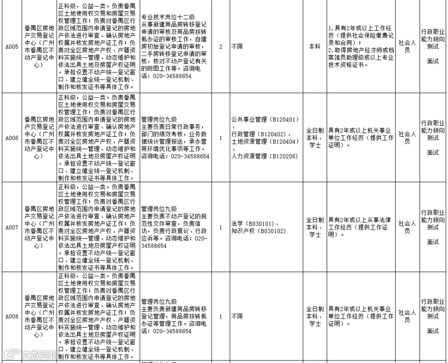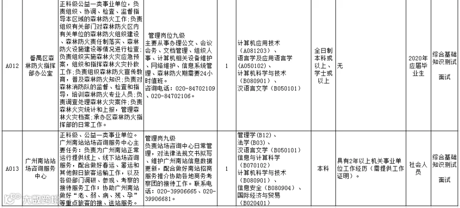 来源:中国南方人才市场、粤公职招聘资讯