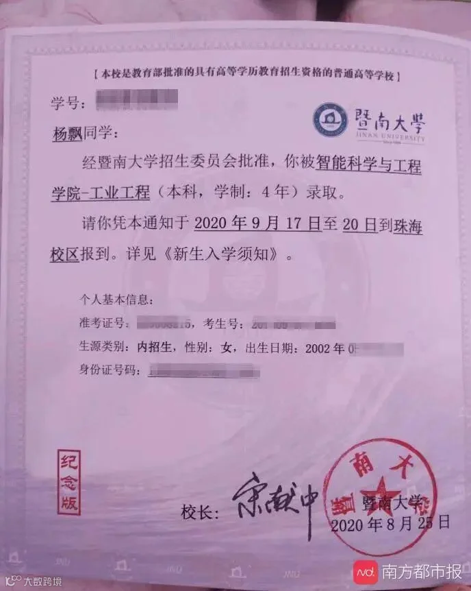 “考大学一直是我的愿望,拿到暨大的录取通知书,有一种如释重负的感觉。”杨飘回忆道。