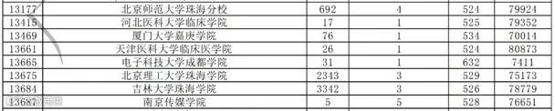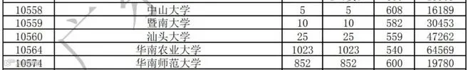 校区)的投档分为601分,最低排位为19533位;暨南大学的投档分为582分,最低排位为30453位;华南农业大学的投档分540分,最低排位为64569位,都远远低于本科批次高分优先投档线的最低排位。