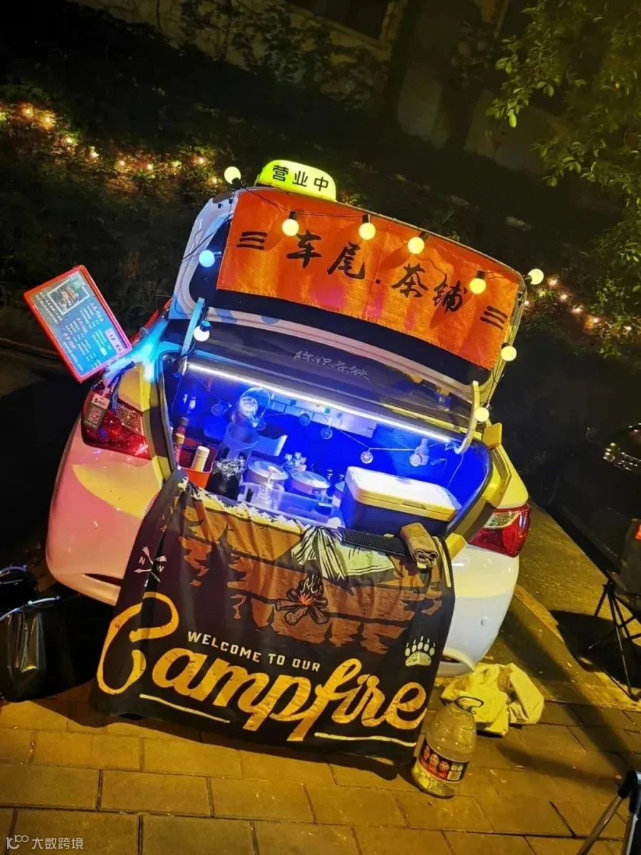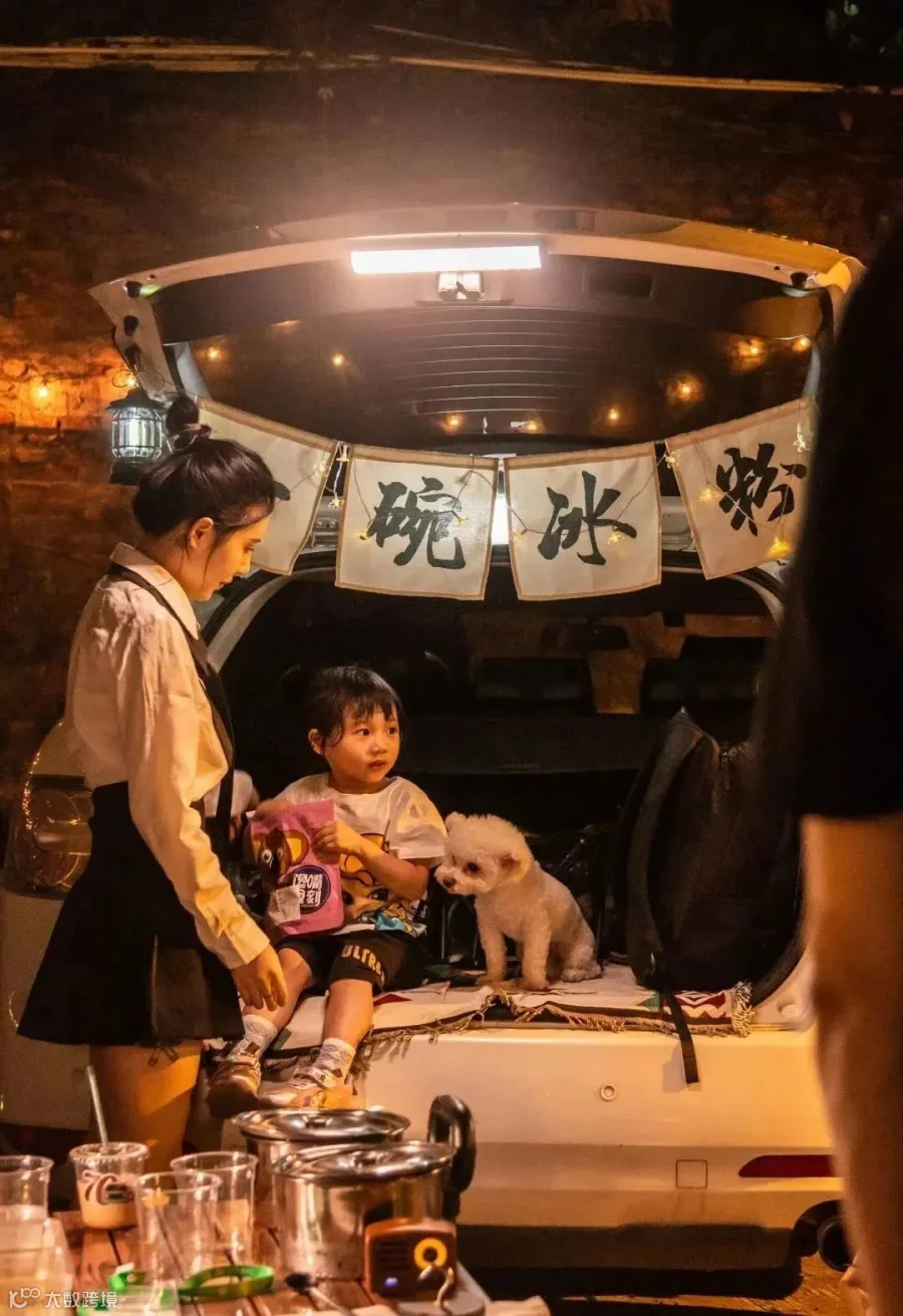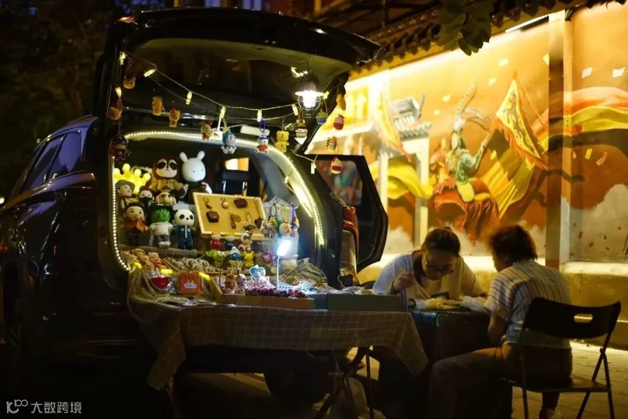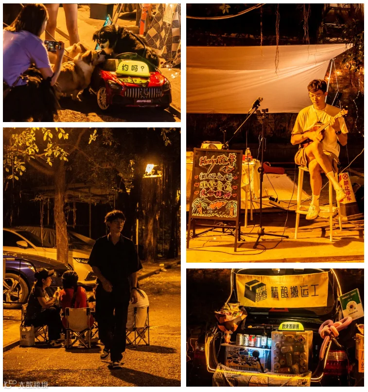 十点钟声敲响,二沙岛的停车位上立马迎来各类型的小车,车主们打开后备箱,简单地放上一些特色装饰,手冲咖啡、手打柠檬茶、潮玩周边、手工首饰……