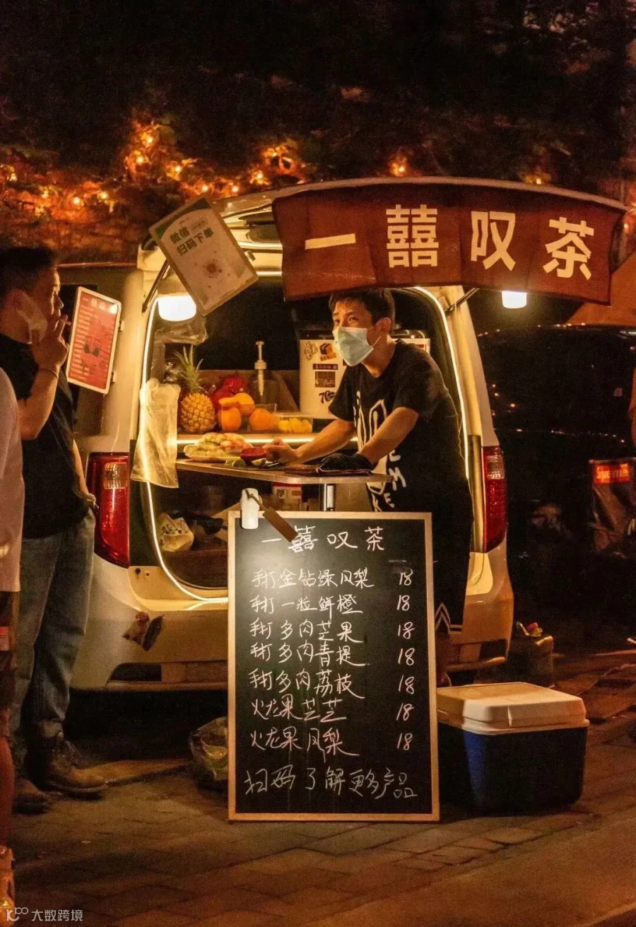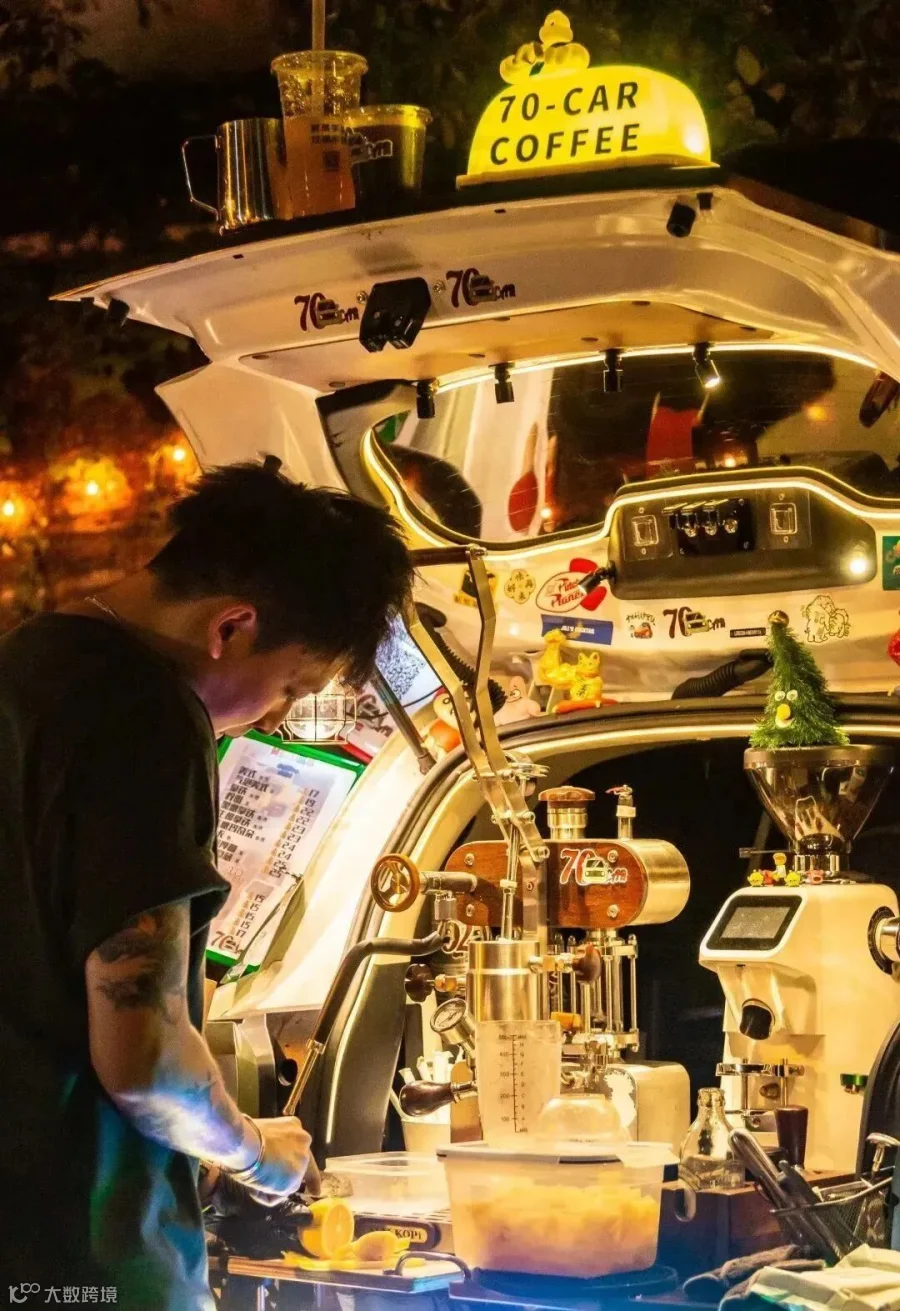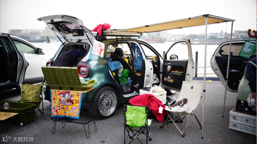 十点钟声敲响,二沙岛的停车位上立马迎来各类型的小车,车主们打开后备箱,简单地放上一些特色装饰,手冲咖啡、手打柠檬茶、潮玩周边、手工首饰……