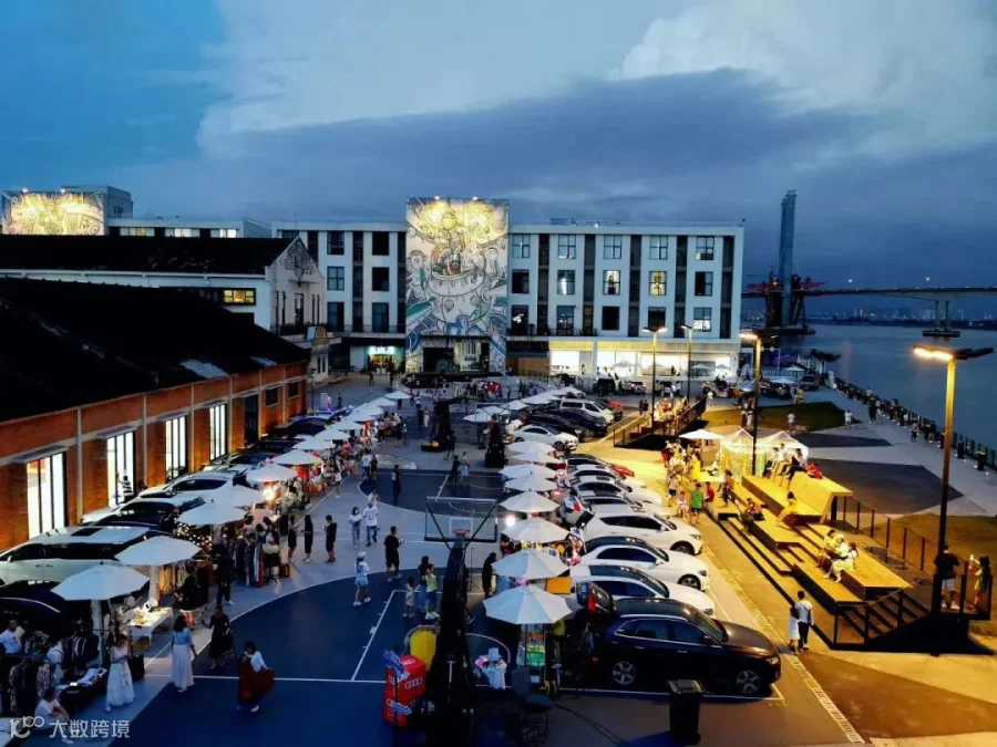 位于BIG海珠湾艺术园内的车尾箱集市,紧邻坐落在江边,旁边是篮球场和创意园,环境舒适宽敞。