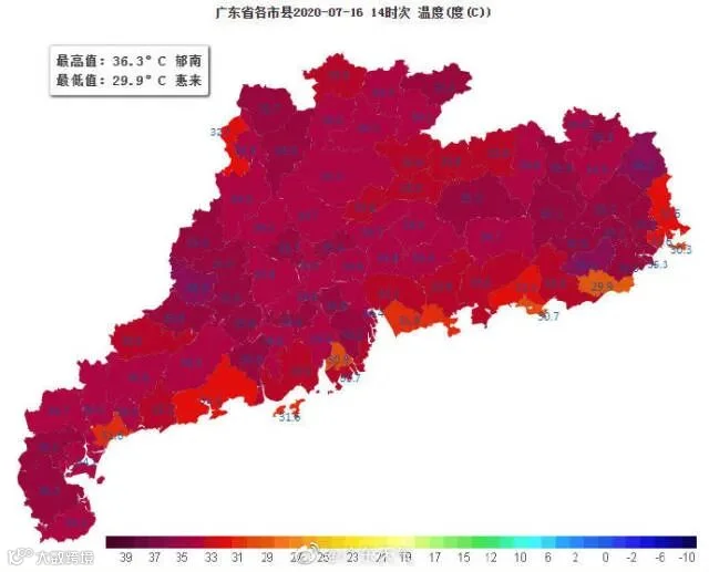 这不,在下午2时,广东这个“大鸡腿”就已经烤得快焦了,多地直逼甚至超过35℃。
