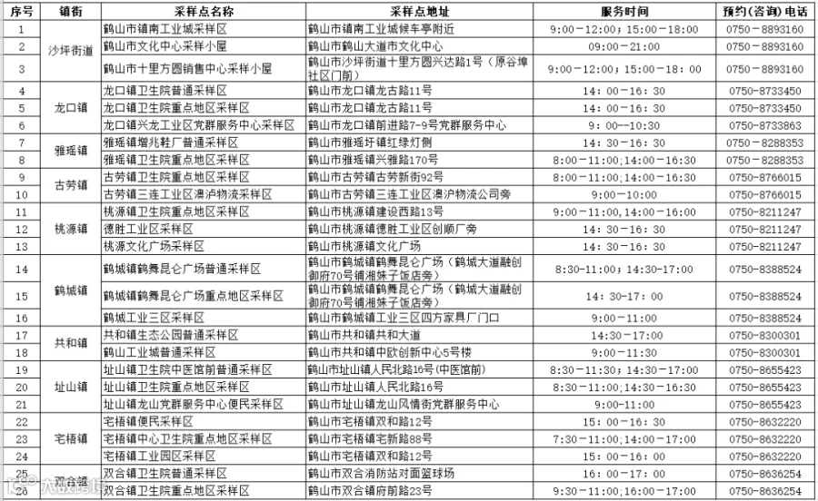 从9月5日至9月7日连续三天开展全员核酸检测,鹤山全市群众按照“应检必检,不落一人”的要求,完成三轮核酸检测。请市民密切关注本区域核酸检测时间,按所在镇(街)、村(社区)通知分时段参加核酸检测并做好个人防护,检测完毕立即返回居所。