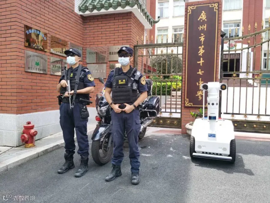 广东公安为每一个考点配备“天巡”机器人,对考生进行人脸识别和体温检测工作。摄影:李润芳