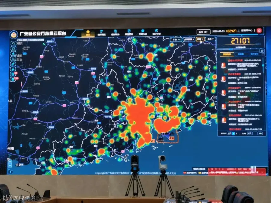 在广东公安厅可视化指挥调度平台上,警务人员可以详细了解全省警情信息。摄影:李润芳