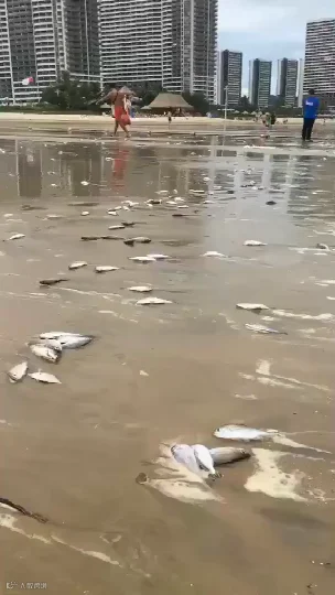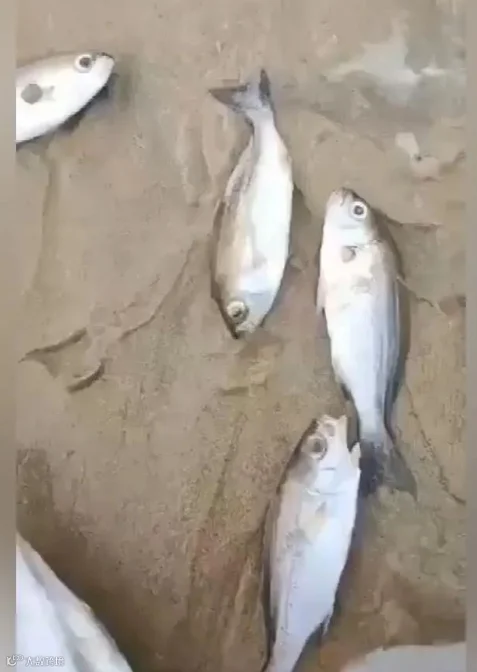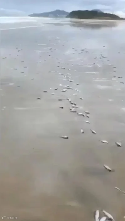 沙滩上惊现大量死鱼,