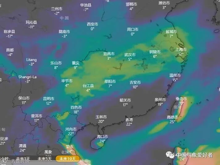 据ECMWF,未来一星期,长江流域持续阴雨湿冷。来自windyty