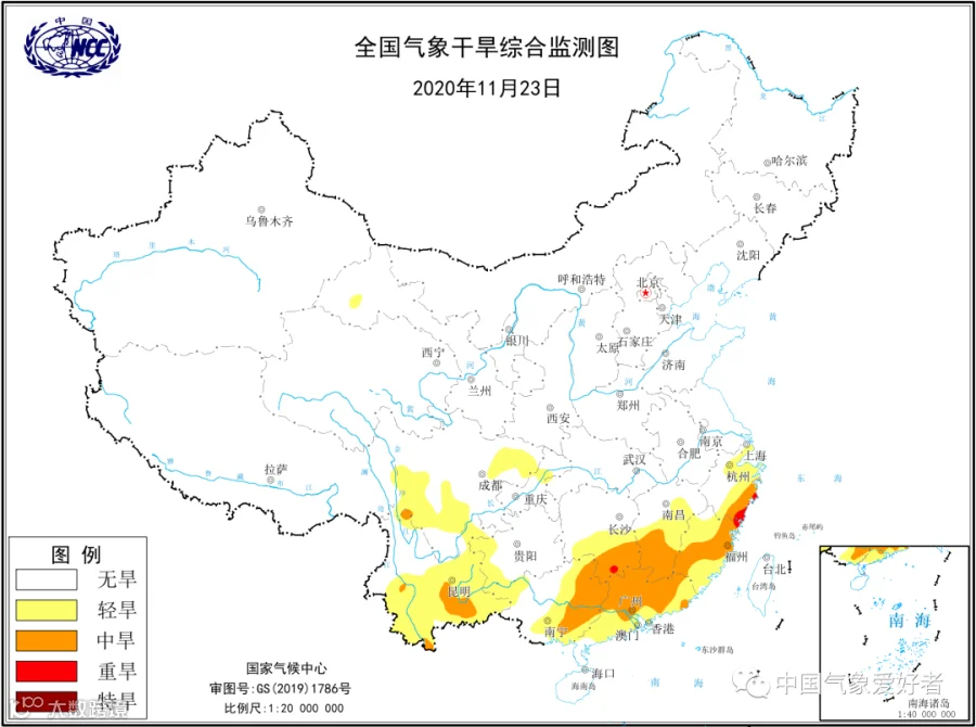 干旱监测显示,福建、广东、广西、浙江、云南均出现旱情。来自NCC