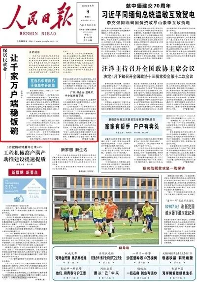 并在头版头条位置点赞广东“撑企业、渡难关,手中饭碗稳下来”。