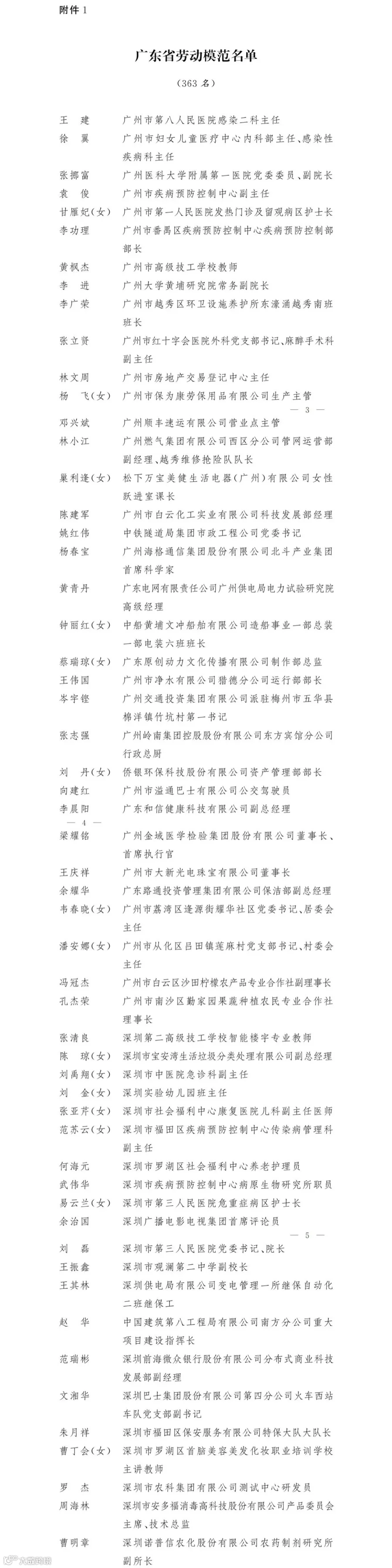 劳模名单中,有曾巧玲(广州市天河区天园街东晖社区党总支书记、居委会主任)、岑宇铿(广州交投实业有限公司集团派驻扶贫第一书记)等一批能在全国全省叫得响、过得硬,能充分代表广东形象、展现广东风采的人选。
