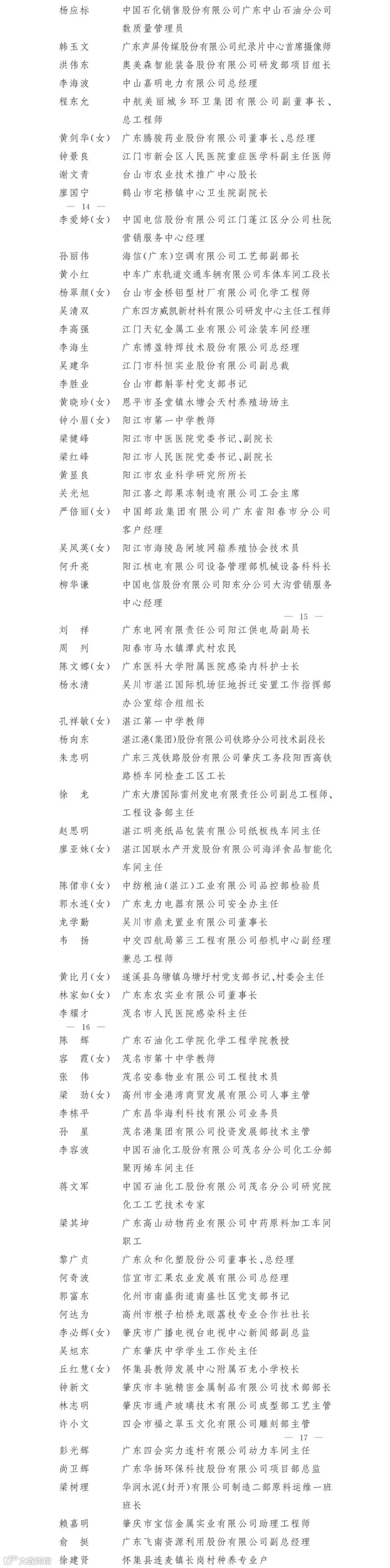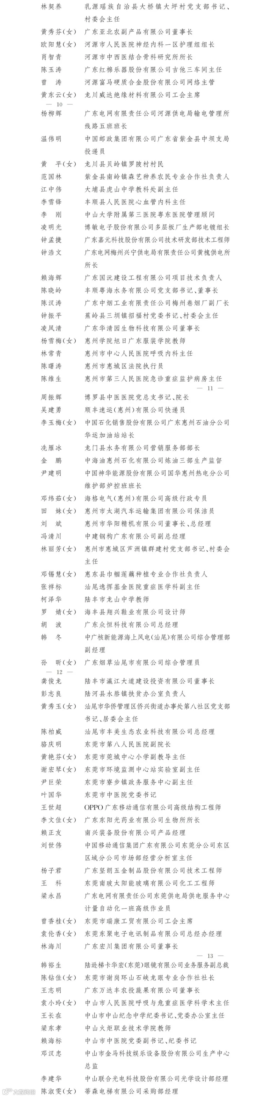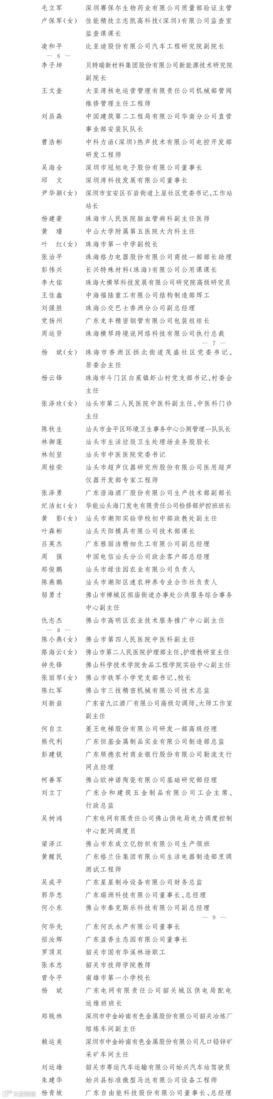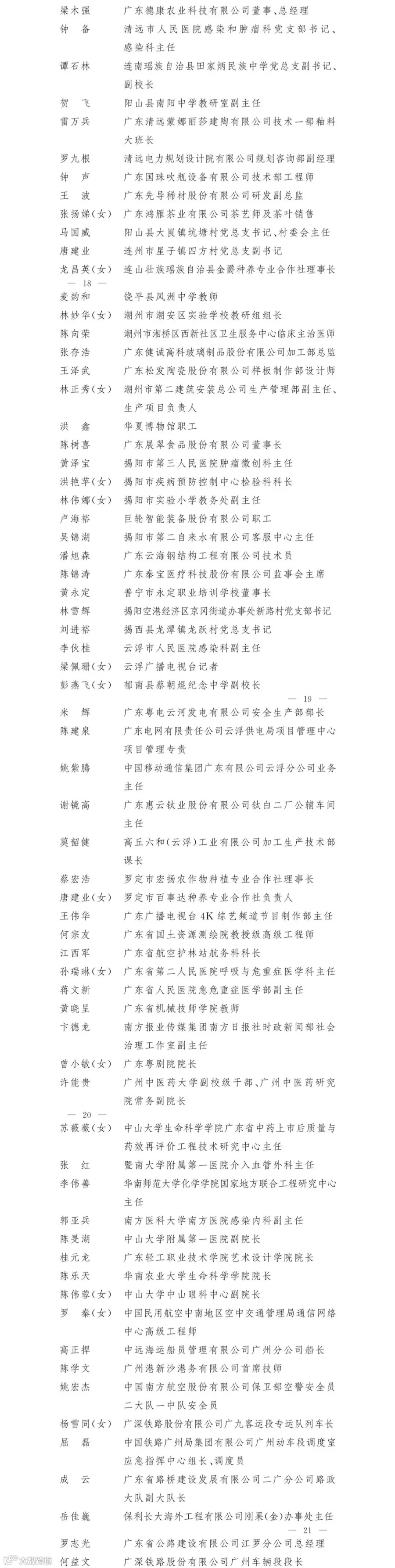 2020年广东省劳动模范、先进工作者、先进集体名单