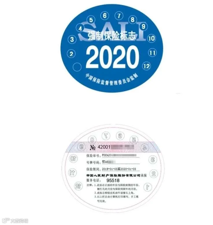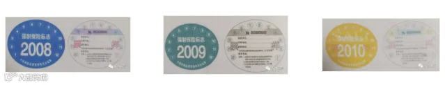在你为车辆投保交强险后,保险公司将会为你发放此标志,有前挡风玻璃的投保车辆将获得内置型标志,根据有效期截止年份不同有蓝、墨绿、黄色3色。
