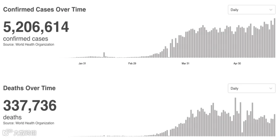 世卫组织最新实时统计数据显示,截至欧洲中部夏令时间5月24日19时07分,全球累计确诊新冠肺炎5206614例,累计死亡病例337736例。新增确诊病例109885例,新增死亡病例5625例。根据世卫组织每日情况报告,全球单日新增确诊已连续四天超十万例。美国、意大利等国家相关部门再次强调要保持社交距离。