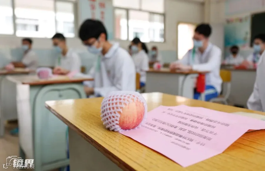 华南师范大学中山附属中学,每个返校学生都收到了一个苹果和一封来自高三全体老师的信。一人一个苹果,寓意“平平安安,硕果累累”。(摄影/叶志文)▼
