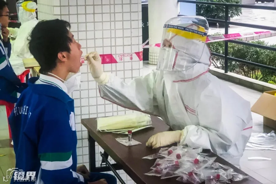 华师附中新世界学校正在为学生进行免费核酸检测。▼