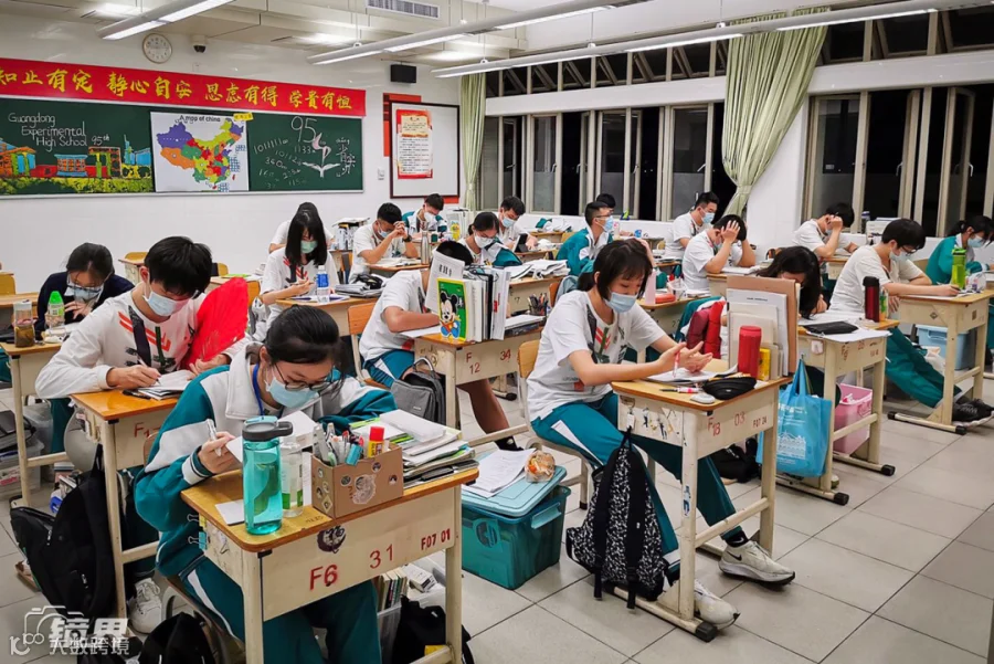 入夜,广东省实验中学,同学们正在认真地晚自习。(摄影/刘效国)▼