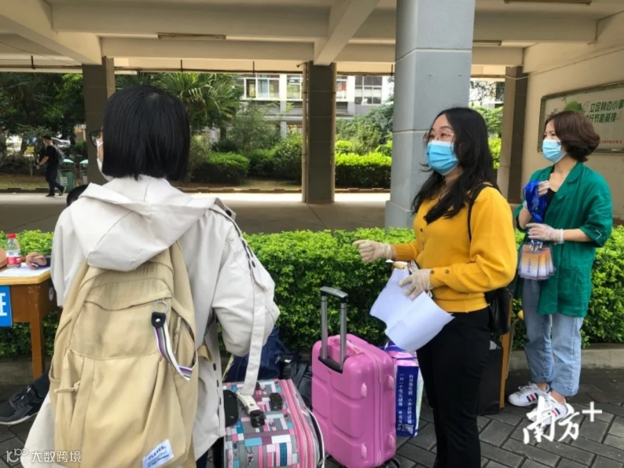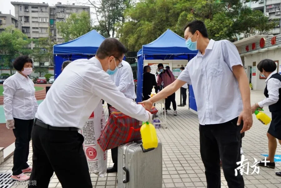政体处副主任黄健锋说:“为了减少聚集,学校对每层宿舍的学生进行分时分流返校。从7点半开始,每小时一批,一共五批,直至中午12点半。”