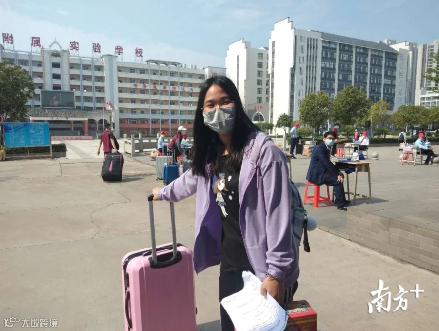 来自廉江车板的文4班学生李春秀满脸春风,她说好久都没看到同学和老师们了,今天特别开心也特别激动。