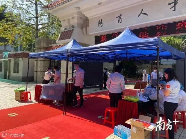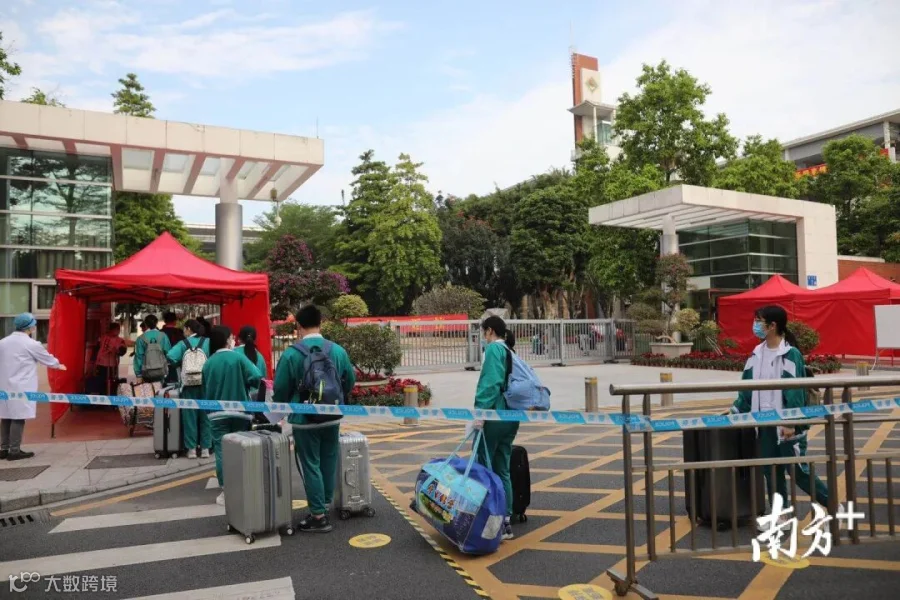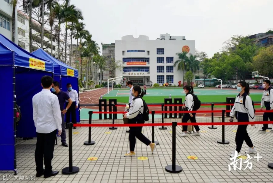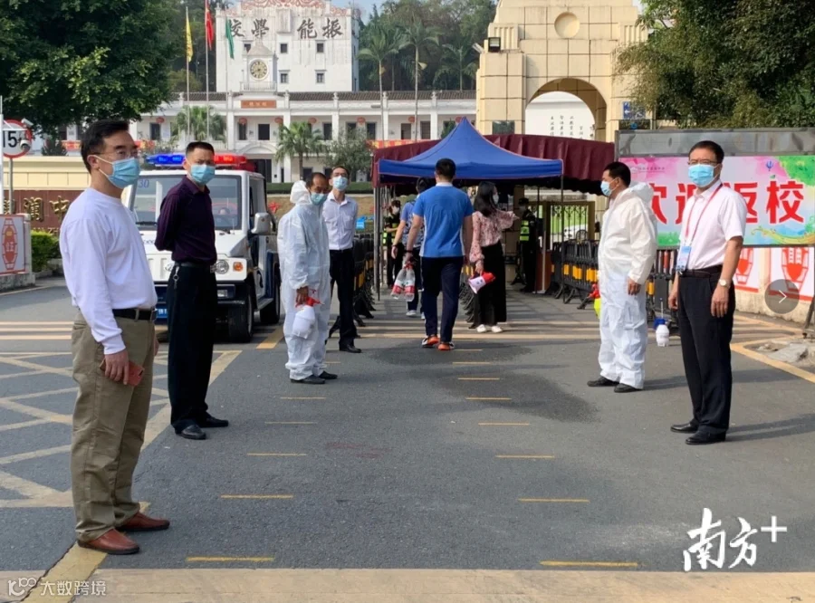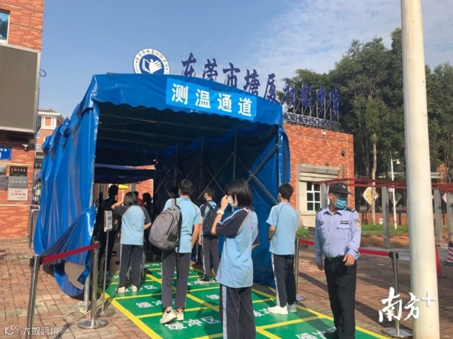 【东莞中学南城学校】7点15分,东莞中学南城学校的门口已经有学生在等待入校上学。为全面落实各项防疫措施,确保学校师生平安有序返校,该校先后开展了4次疫情防控模拟演练。为进一步加强对教职员工的健康管理,学校组织初三全体教师及所有行政、后勤人员于4月18日进行了核酸检测,经医院反馈,全体参与核酸检测的人员结果均为阴性,符合返校返岗条件。初一、初二年级教师安排在4月30日进行核酸检测。