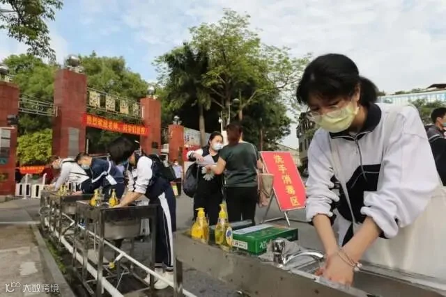 【揭阳市揭东区第二中学】揭阳市揭东区第二中学设置了体温测试区、消毒区与消毒洗手点。