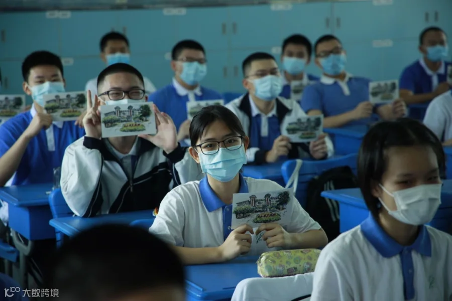 【宝安中学】学生展示宝安中学给每个学生发放的手绘明信片。