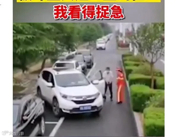 帮男子停车的环卫工姓朱,今年46岁了