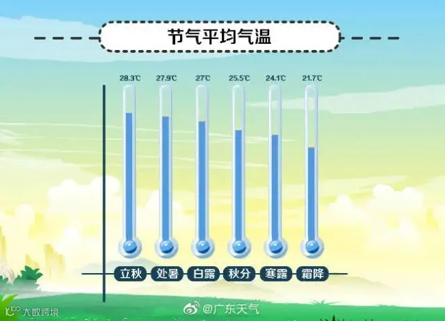 数据显示,对于广东,夏天一般要赖到10月,才肯让位给秋天。从全省平均气温的数据来看,也要到秋分节气,才有阶梯式明显下降,而35℃以上高温天气要到寒露节气才绝迹。