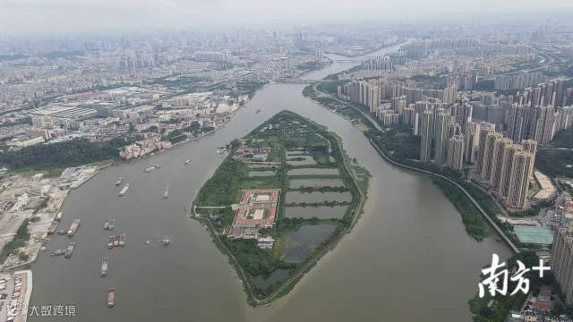 佛山南海区金沙里小区业主林先生(化名)是一名摄影爱好者,平时他最爱端着相机从自家的阳台往沉香岛眺望。从40楼的高度看去,沉香岛好像一只横卧珠江间绿色的“眼睛”,江水在这里一分为二,静静地往南流淌。