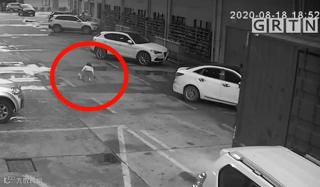 8月18日傍晚7点左右,在东莞黄江某科创园内,一名女子从园区的厂房里走出来。该女子低头玩手机时,注意到自己的鞋带松了,随后就蹲在地上系鞋带。