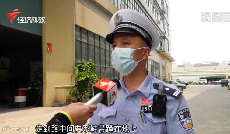 该女子当时正蹲在路中间系鞋带...