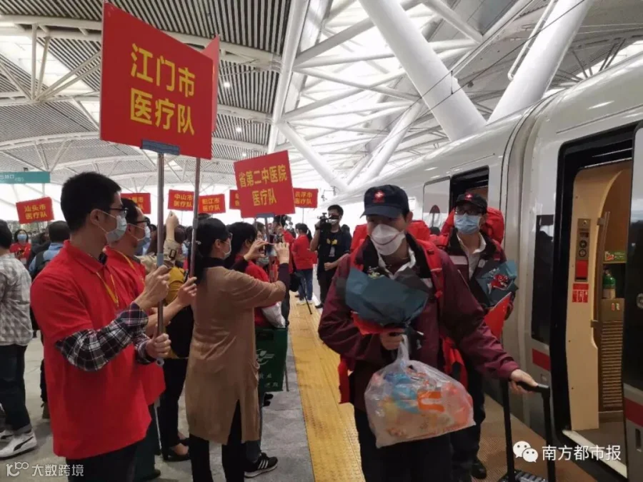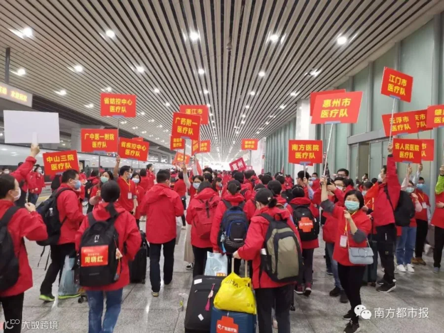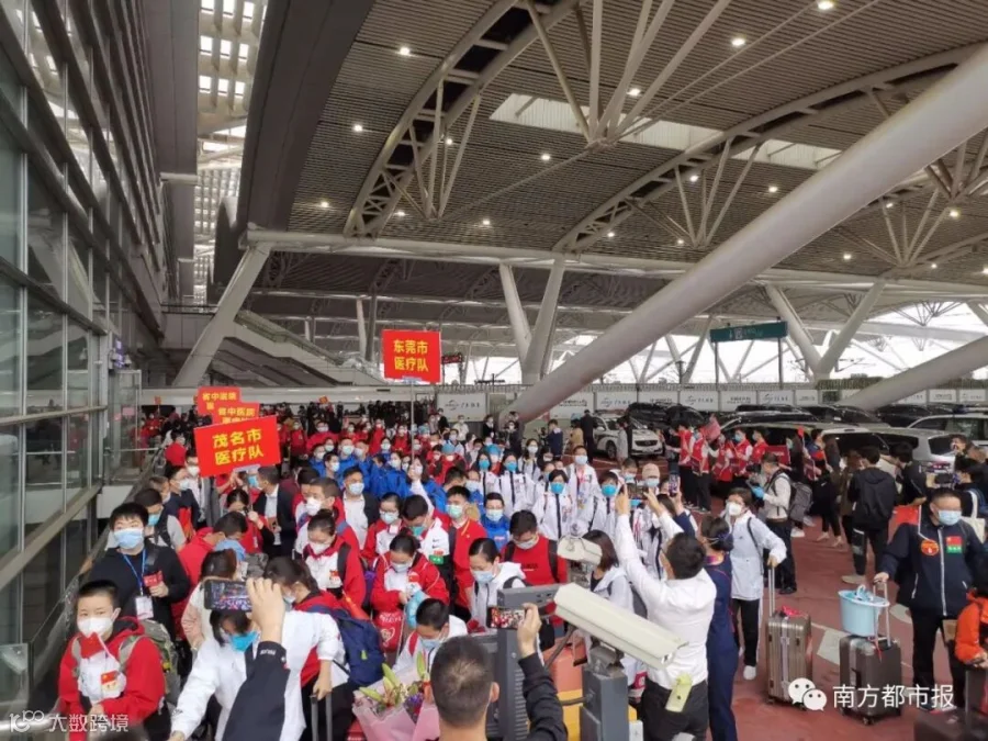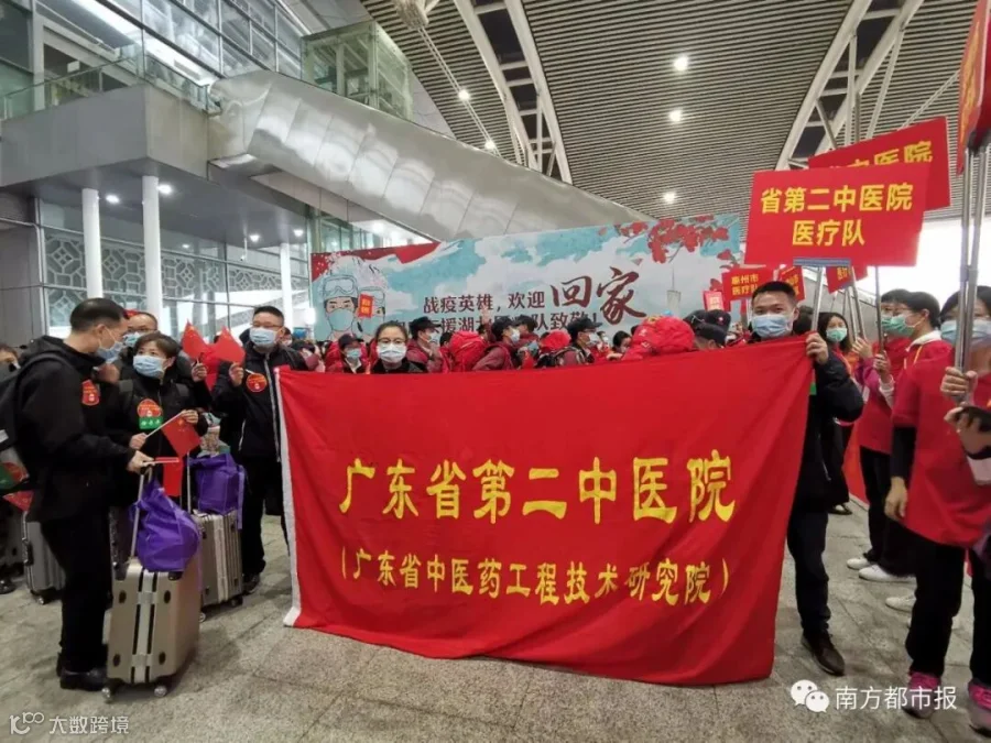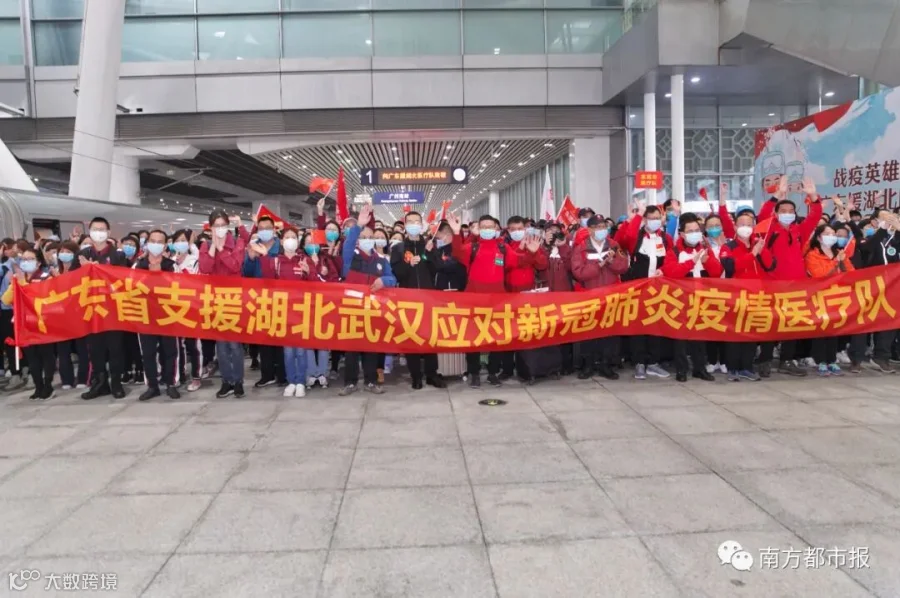 从1月24日除夕夜,作为国家派向湖北第一批医疗队之一,50天来,广东共向武汉、荆州、宜昌等地派出共26批医疗队,共计2484人,他们来自全省21个地市、272家医院或机构。今天起,广东医疗队员陆续返粤。