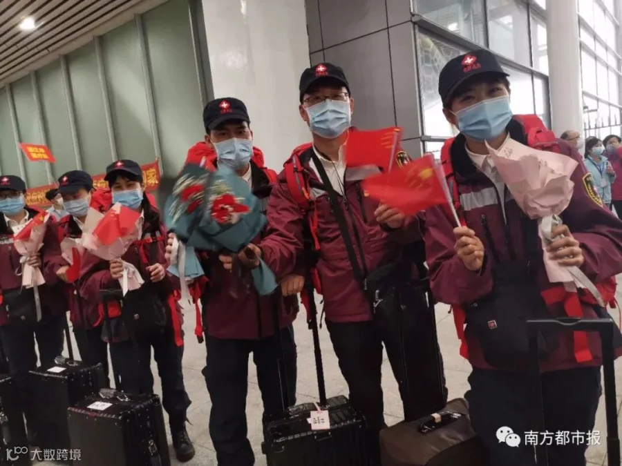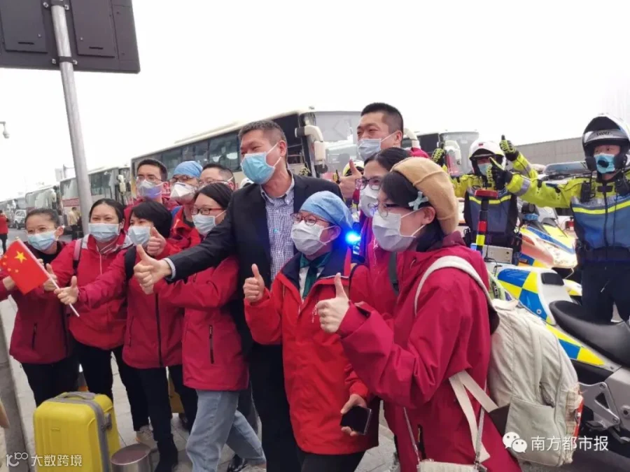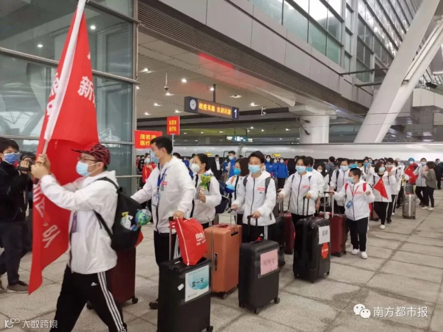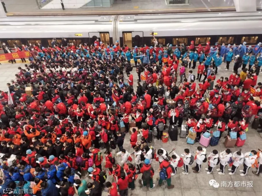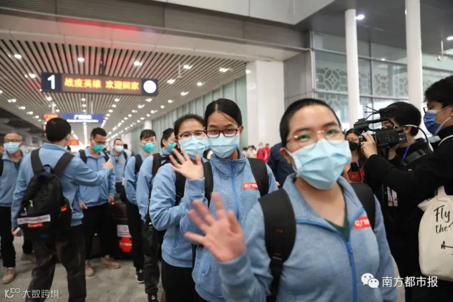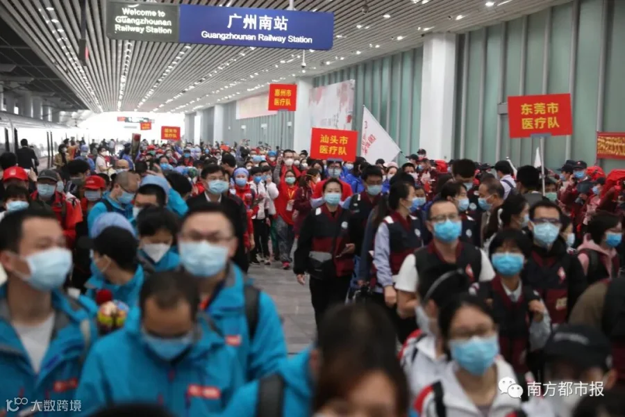从1月24日除夕夜,作为国家派向湖北第一批医疗队之一,50天来,广东共向武汉、荆州、宜昌等地派出共26批医疗队,共计2484人,他们来自全省21个地市、272家医院或机构。今天起,广东医疗队员陆续返粤。